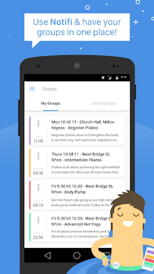 MyNotifiApp is a group management app that allows individuals and businesses manage their client groups and payments. Members can receive important updates to their private noticeboard. Member data is never shared and only the group owner and the member can see each other. It's all about data protection.