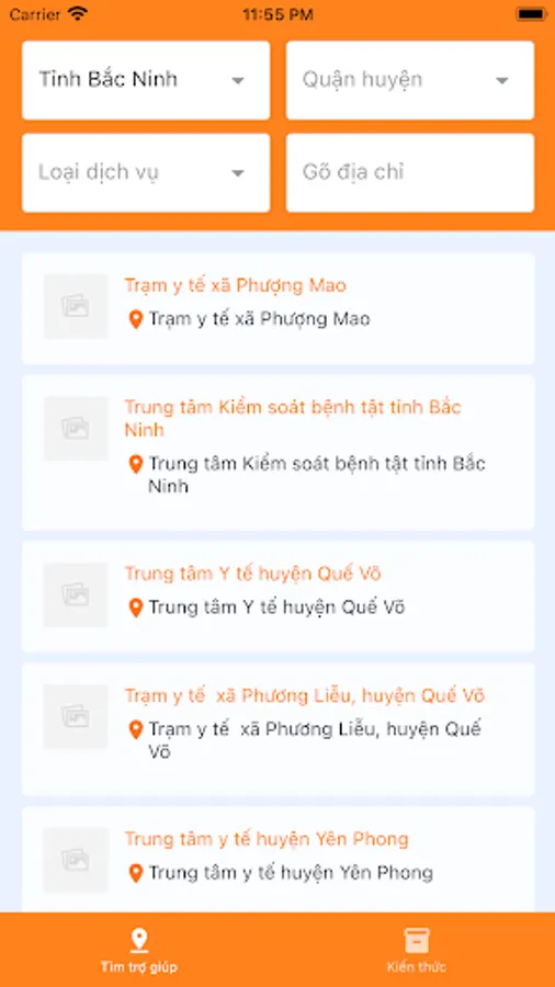 - Search for medical facilities and support services