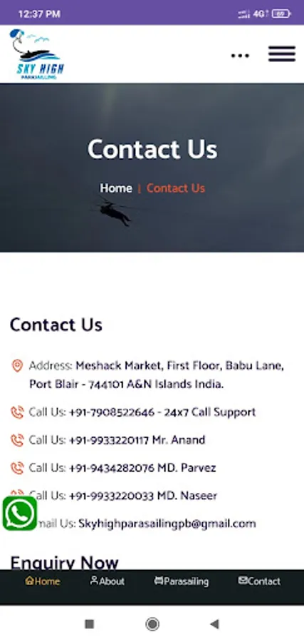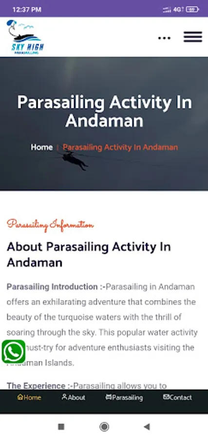 Welcome to Sky High Parasailing, your premier parasailing activity provider in the breathtaking paradise of Port Blair, Andaman. Embark on an exhilarating journey with us as we take you soaring high above the crystal-clear waters of the Andaman Sea. Our passion for adventure and commitment to safety make us your top choice for an unforgettable parasailing experience.