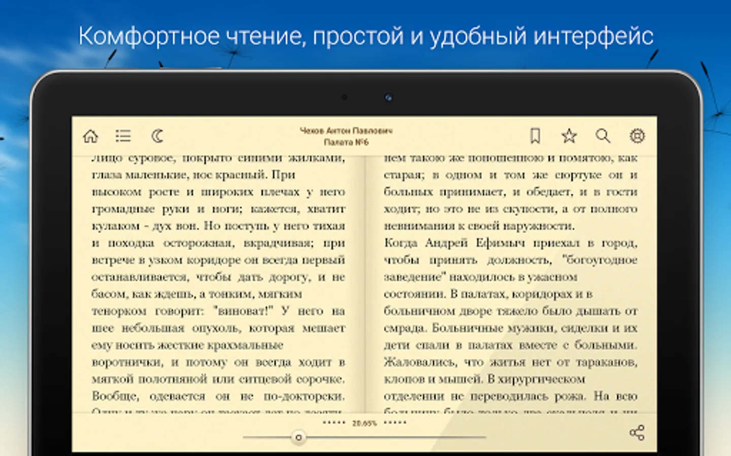 "Home Library" is not just a convenient program for reading books, but a whole library containing thousands of free classics. The application covers almost all genres: fiction, philosophical treatises, journalism, memoirs, children's literature and others.