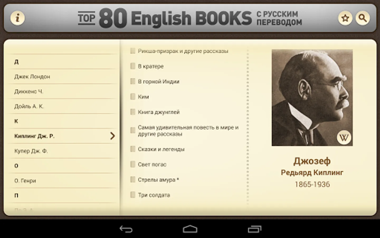 "80 English Books translation" - is both a program- "reader" and a library containing classic literary works best British and American writers, accompanied by a Russian translation (by paragraph).