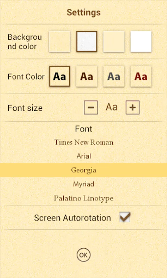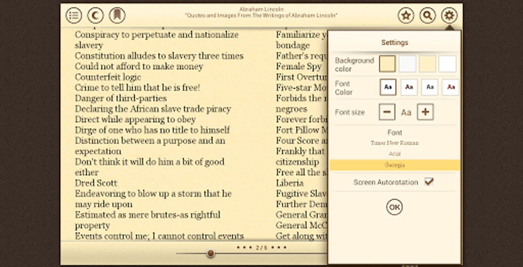 • Flexible text display (choose fonts, ‘paper’ background color and texture yourself!)