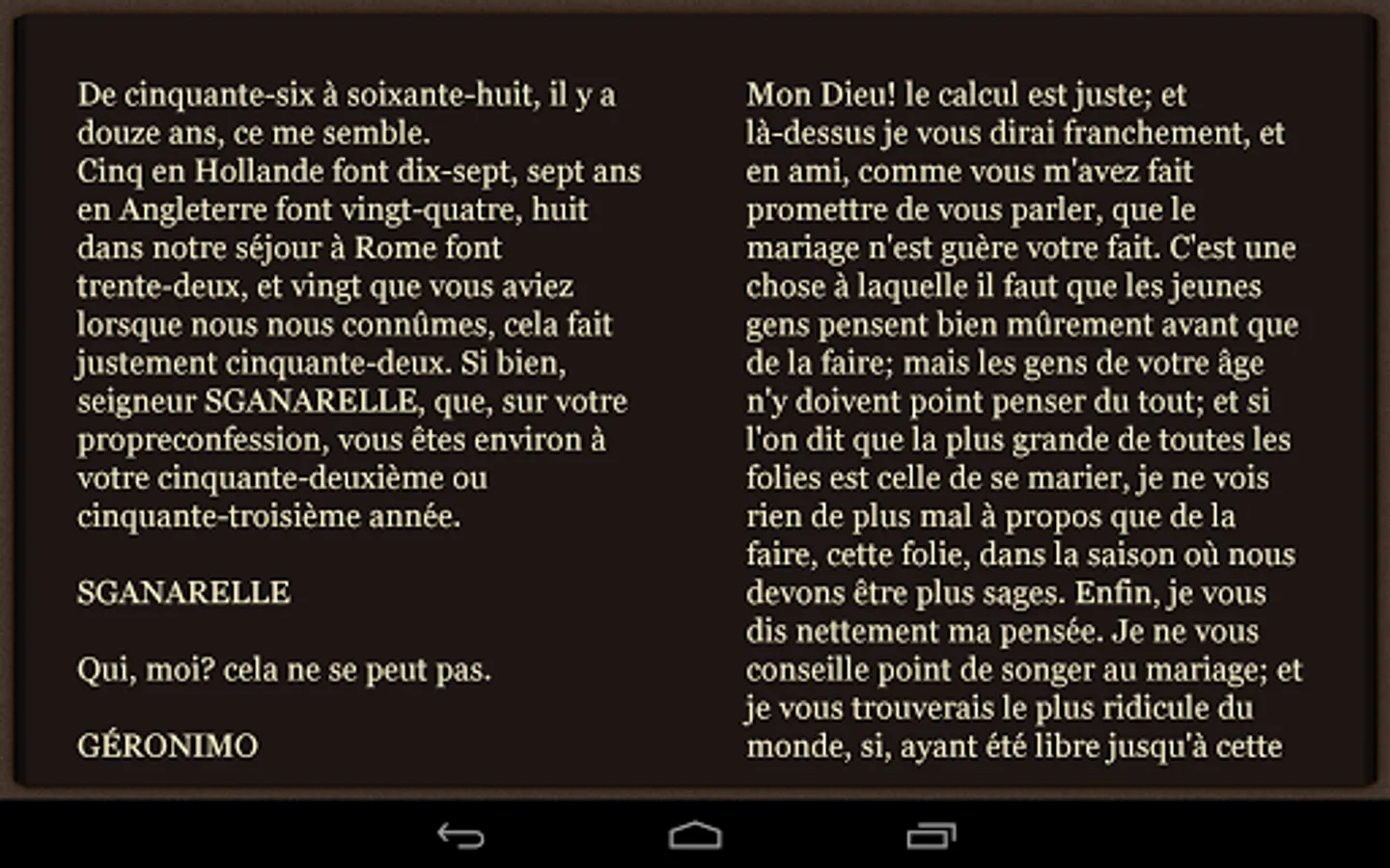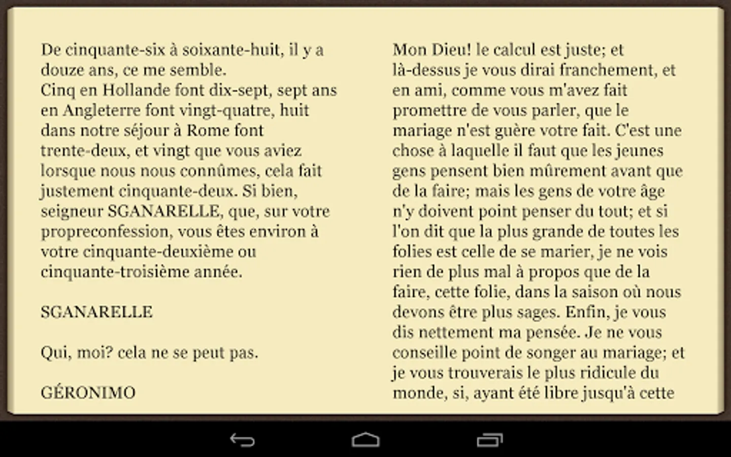 Bibliothèque à Domicile (French Home Library) is a very convenient software application for reading books which contains 1100 classic works of French literature and covers most of genres: fiction, philosophical treatises, opinion journalism, memoirs, children's books and others.