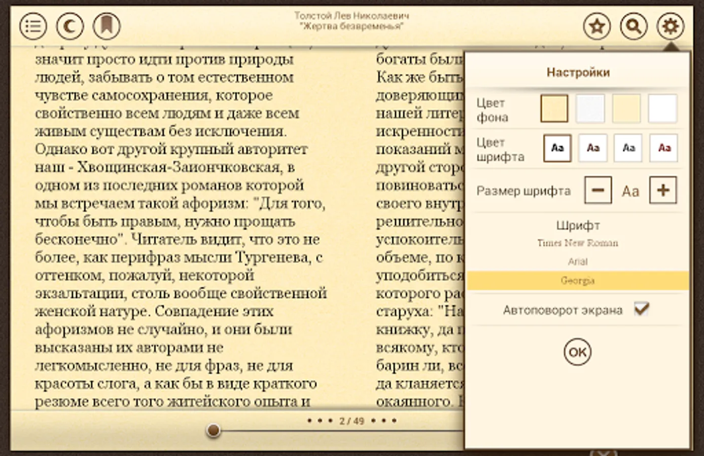 The interface has a number of handy features and settings that make reading text as comfortable as possible.