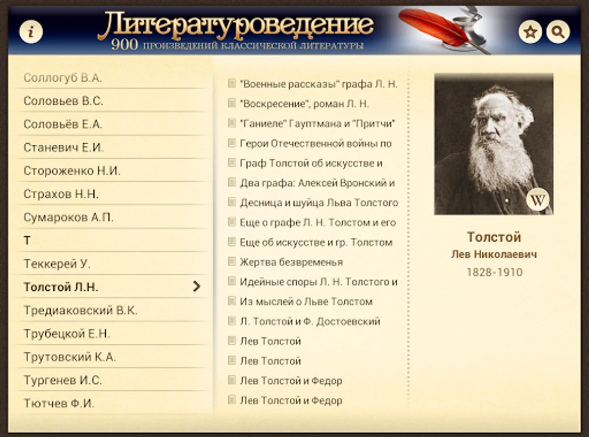 "Literary Criticism" - is both a thematic whole library devoted to fiction, with more than 900 works, and convenient program for reading books.