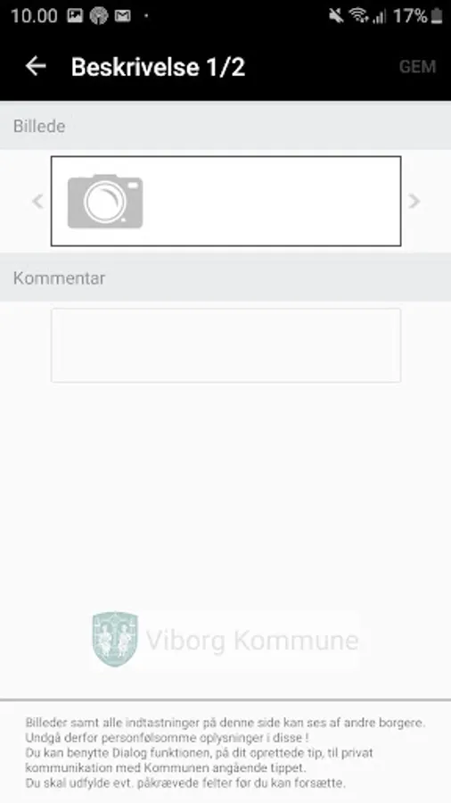 To create a hint must choose which category the tip is about taking a picture of the subject, and given a brief description of what the problem is about. The app automatically finds your location via GPS and sends it with the tip.
