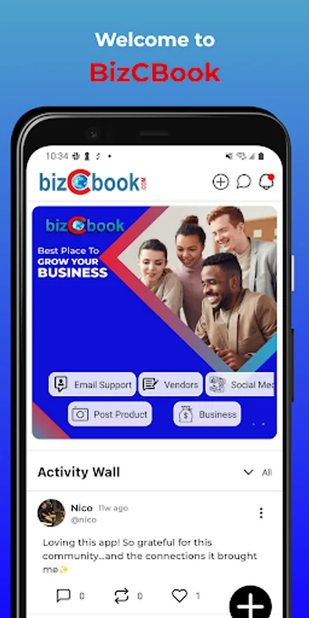 * Upload products and services via pictures or videos to the bizCbook activity wall