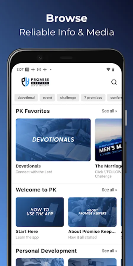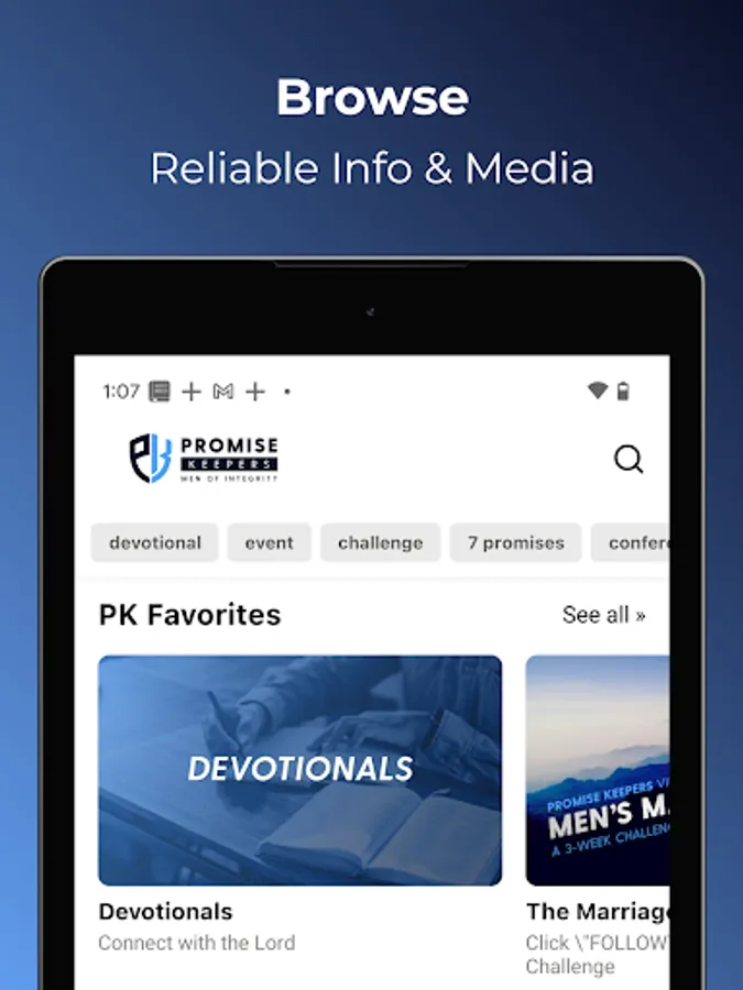 Promise Keepers is a social platform that combines the power of gamification, a guided journey, a like-minded community to take your daily personal walk with Christ to the next level.