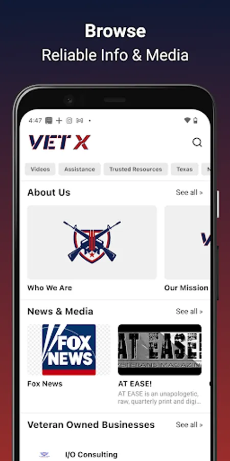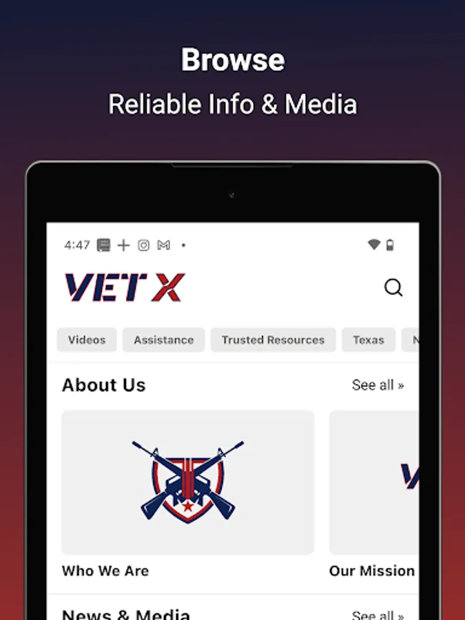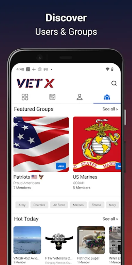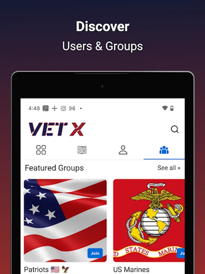 VetX is a social platform that combines the power of gamification, a guided journey, and a like-minded community, to take your daily life as a military member and veteran to the next level.