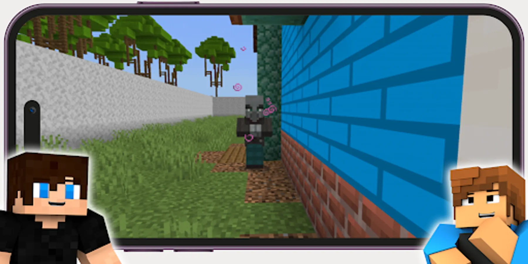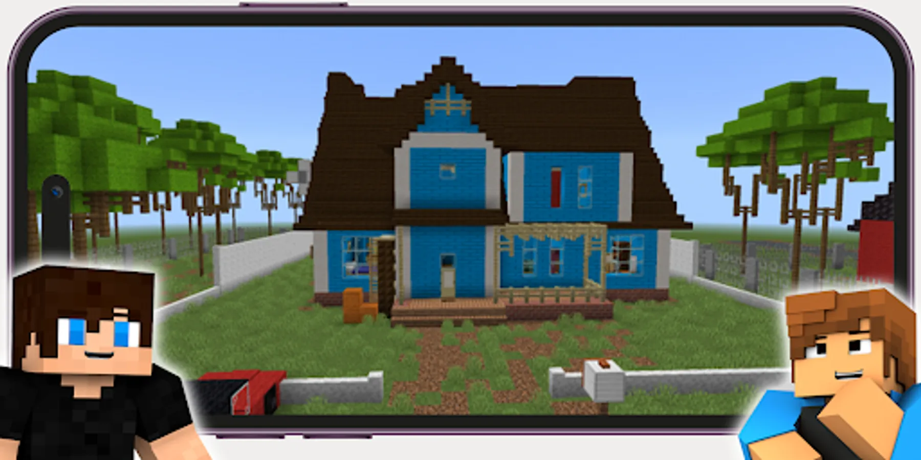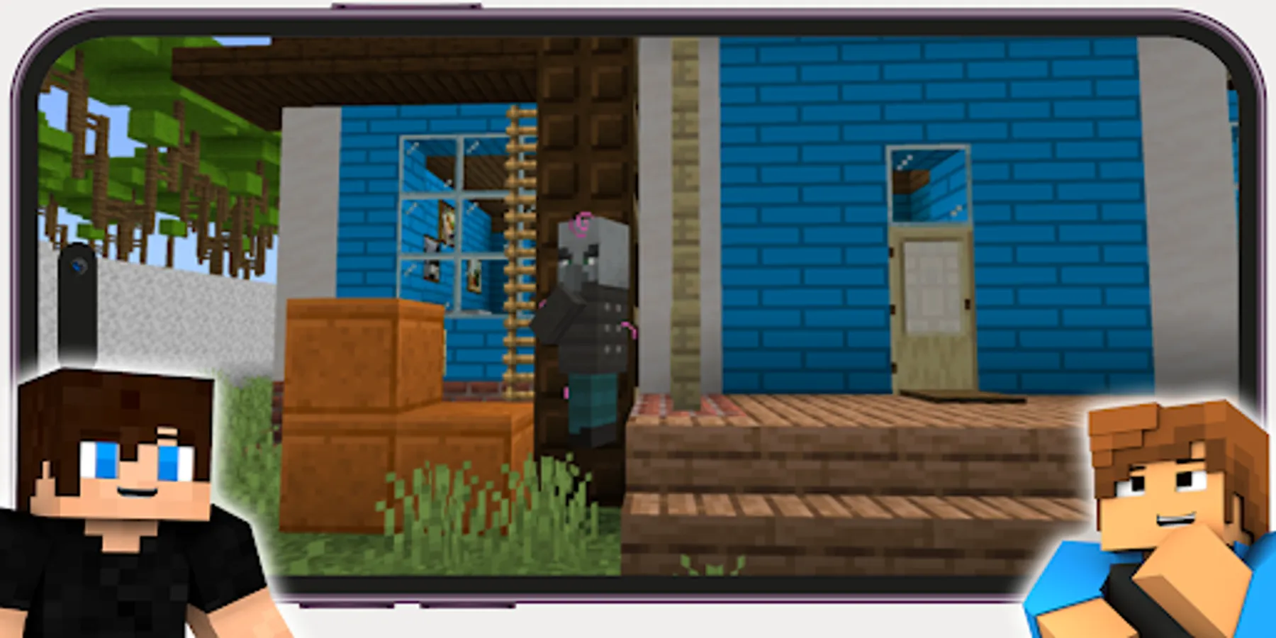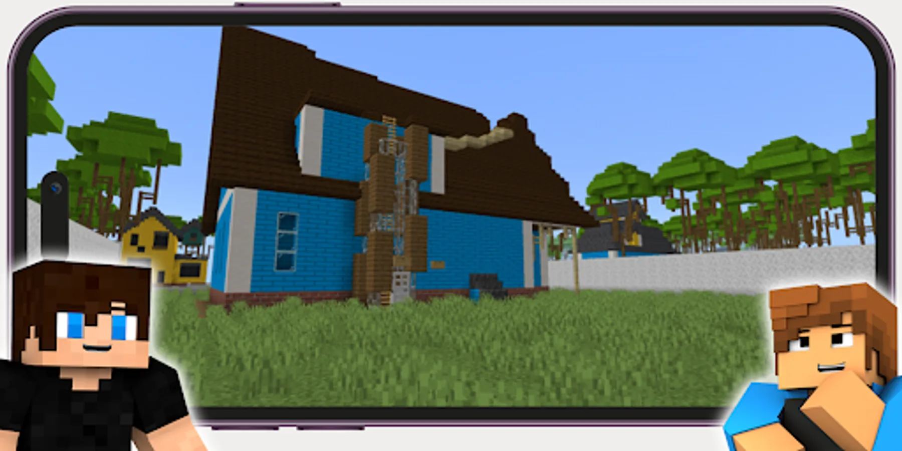 A Hello Neighbor secret neighbor on this map will be a vindicator from Minecraft, but slightly modified. He usually walks around his horror house, but if you get too close, he will chase you in a rage, so try to avoid him. But if he is already running after you, you must run to your house, where the secret neighbor game will not reach you.