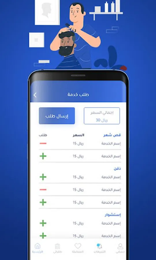 - اسعار الخدمات ثابتة ومحددة للحلاق