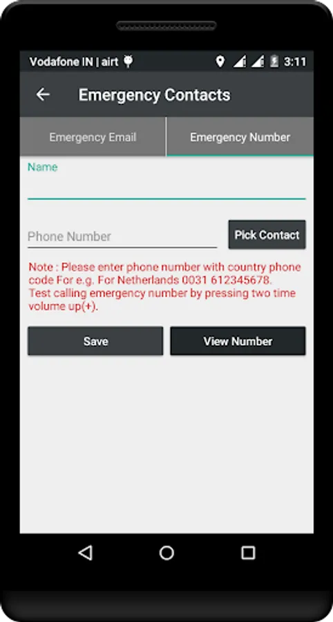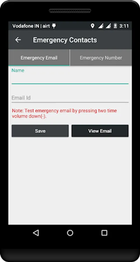 - Click two times volume down and app takes two pictures with location info and sends to one or more email address of your choice already put in app.