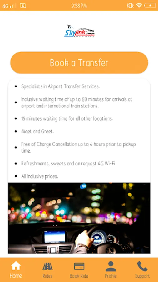 All Skylink Executive drivers are highly experienced and rigorously tested on local geography and driver etiquette. Trust them to get you there effortlessly and in class-leading comfort.