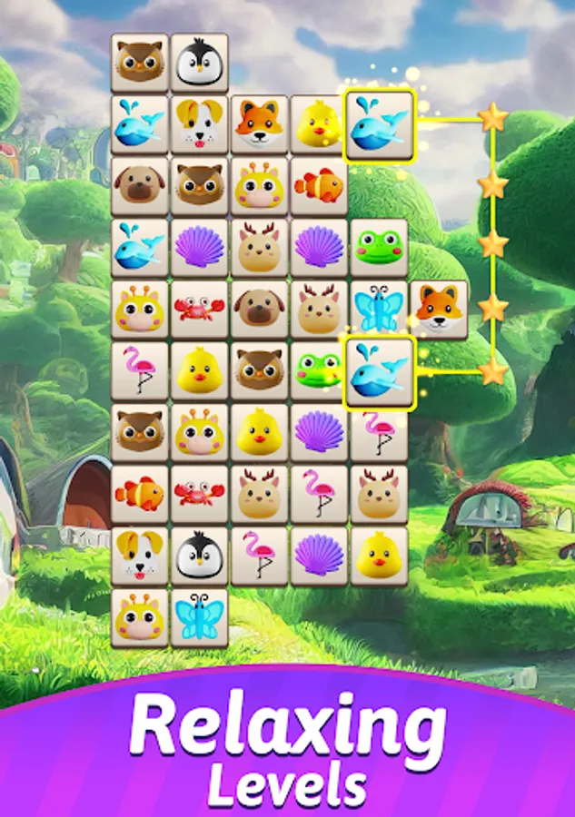 🌟 Connect the tiles on board with up to 3 lines and no other tiles blocking the line path.