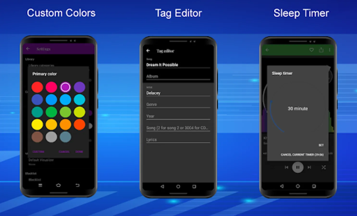 Automatically turn off music playback by setting sleep timer inside Music Player.