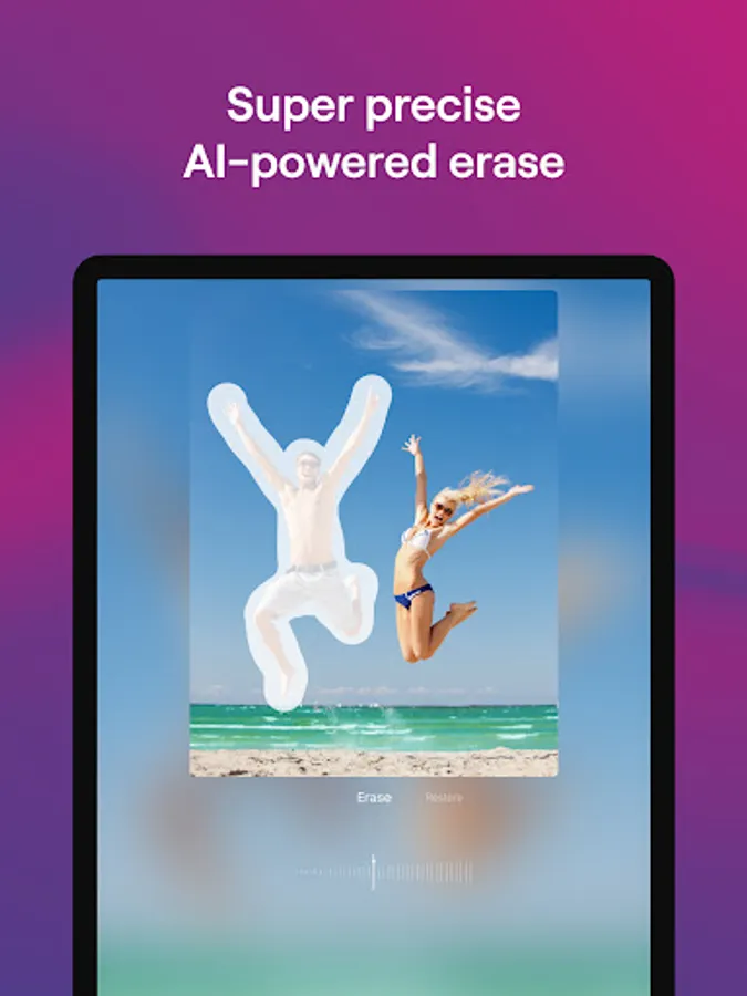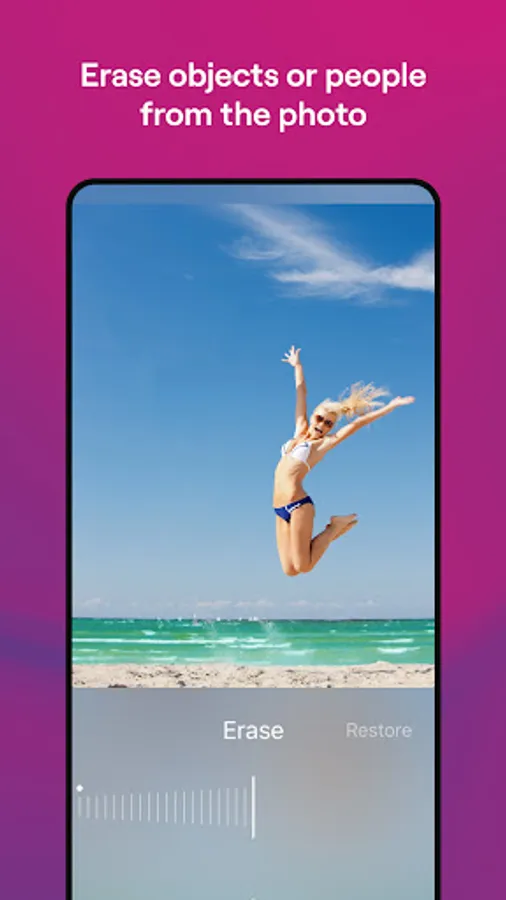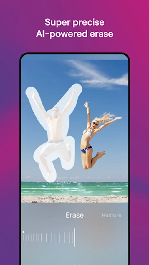 Erase is the easy way to remove people who spoil your shot or accidentally get into the frame, which happens a lot at popular sightseeing spots. Clear debris, leaves, and distracting objects from your picture, get rid of unnecessary elements in a macro image, or even remove your own shadow from the frame. You can also easily do some background texture alignment, leveling soil, asphalt, walls, and more.