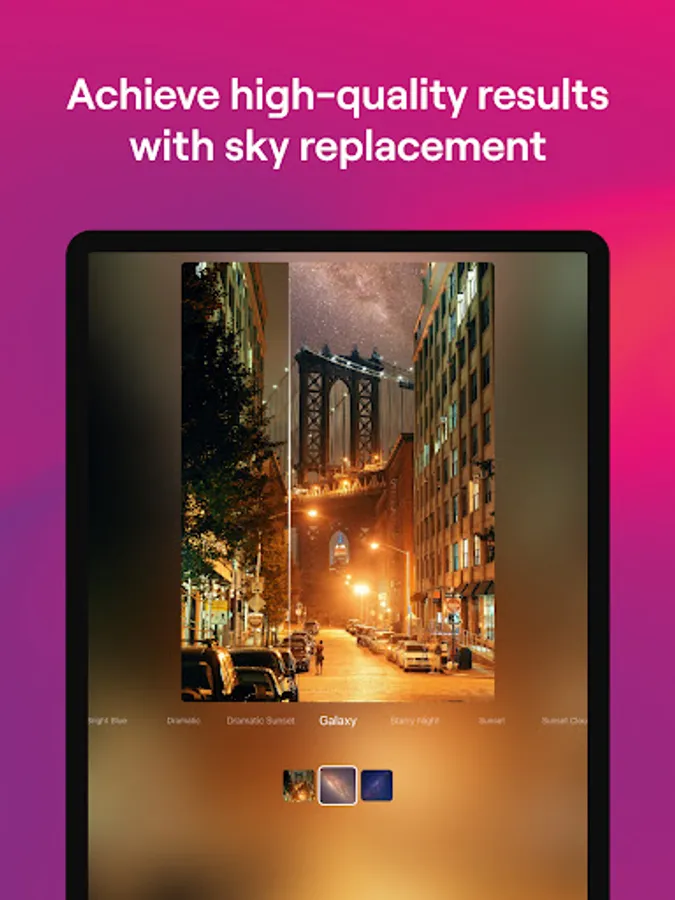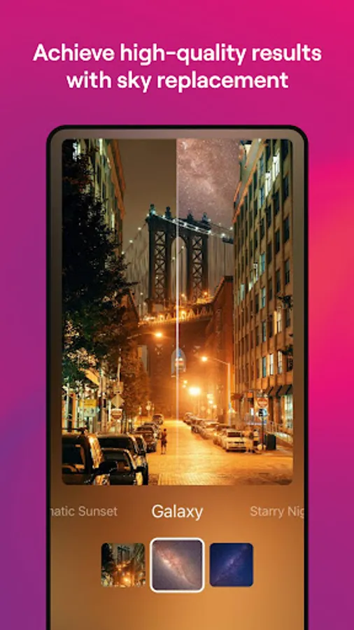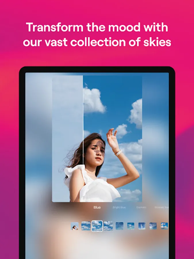 Select a Sky is great for transforming photos with gray or white skies into vibrant images without resorting to correcting overexposure (something that a lot of phones don’t do well). It allows you to experiment with colorful skies, add drama, or make your photo artistic to produce a wow effect.