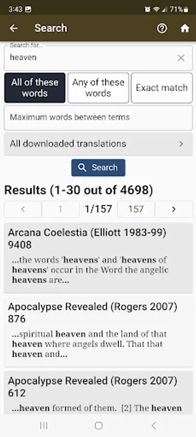 The Swedenborg Reader allows you to read and search the theological works of Emanuel Swedenborg. The app provides user interfaces in 22 languages, and at least 1 translation of Swedenborg's works in each those same 22 languages. This latest version includes hyperlinks within and between works, and to the many Bible passages that are cited.