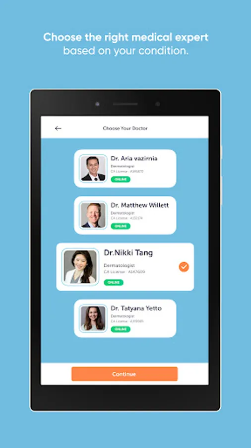1. Download the app and connect to your doctor. Tell us where you live by entering your zip code, and we will recommend you a doctor, or you can also select any doctor from the wide range of options available, who are licensed to practice in your home state.