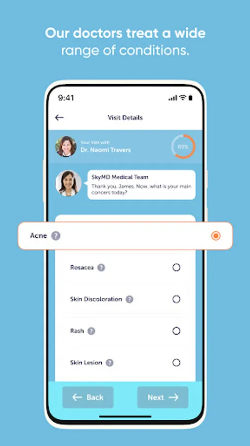 SkyMD is a national telehealth platform, specialising in multiple fields of medicine like dermatology and primary care, staffed with doctors that treat patients every day across America. With online dermatologists and primary care doctors in all 50 US States, SkyMD's medical team of doctors is literally available to treat patients in every zip code, from infants to centenarians!