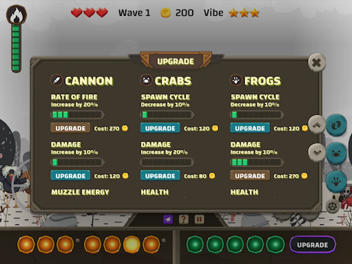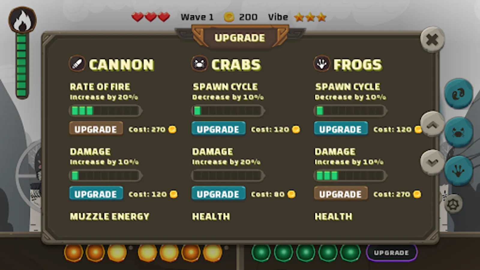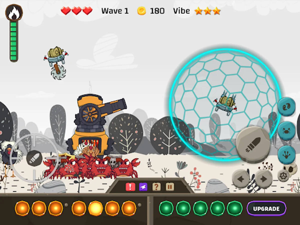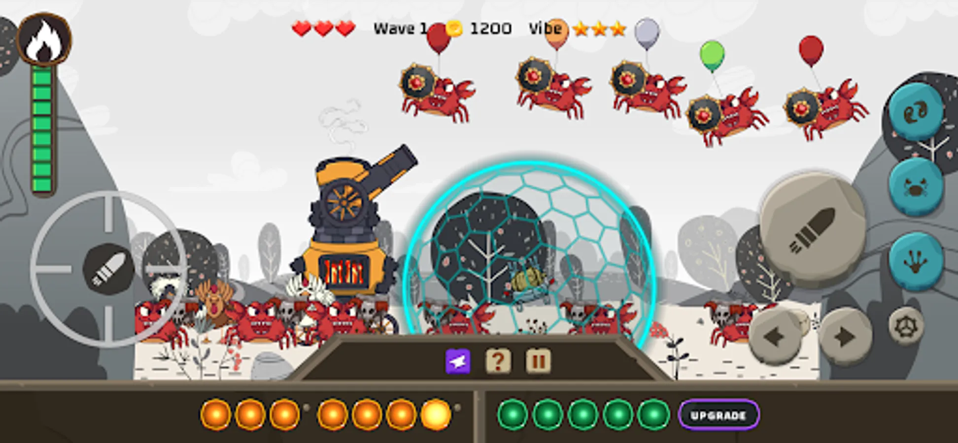 Waves of hungry villain crabs have the only goal to steal your party chickens. Defend your tribe with an archaic cannon and abundance of explosives. Crab Invasion is a fast paced tower defense game with a revolutionary and never-seen-before gameplay. Shoot, place and upgrade towers, but also play music as a DJ to your allied troops. Eliminate all invaders in fifteen handcrafted waves. Unlock more levels and discover new enemies and strategies. Get ready to shoot and blast invading crabs. Become part of this addictive Tower Defense game.