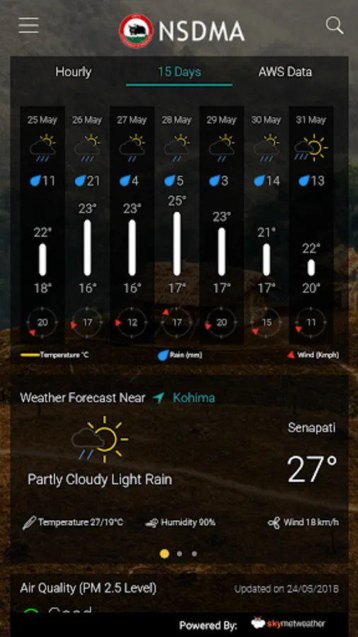 NSDMA Weather app will keep you aware and updated with accurate and timely forecast data, weather videos, weather alerts and live lightning maps. Our automatic weather stations (AWS) data provides information about weather of various cities in Nagaland.