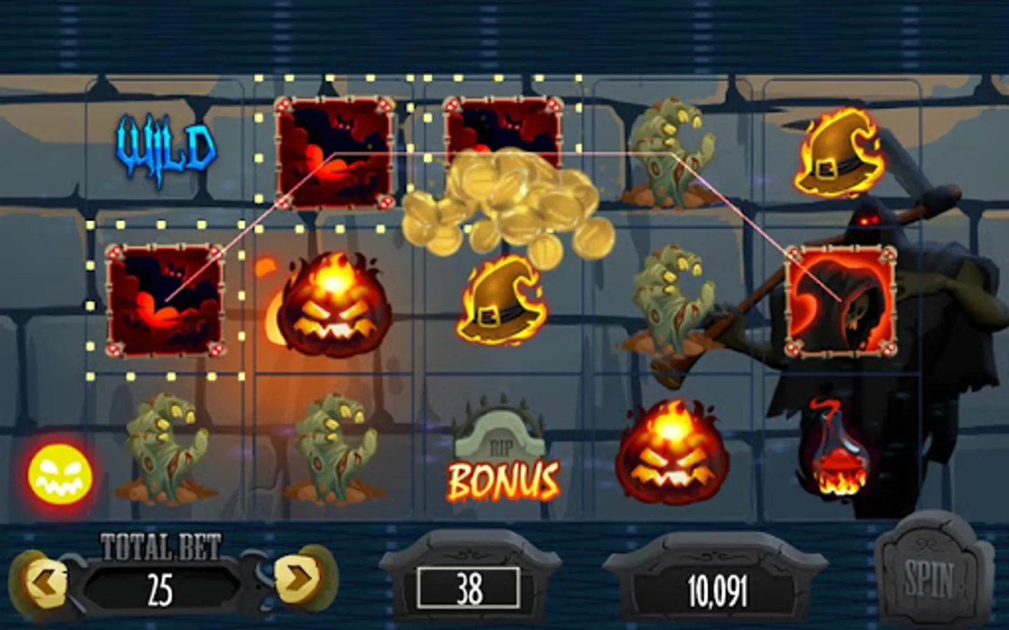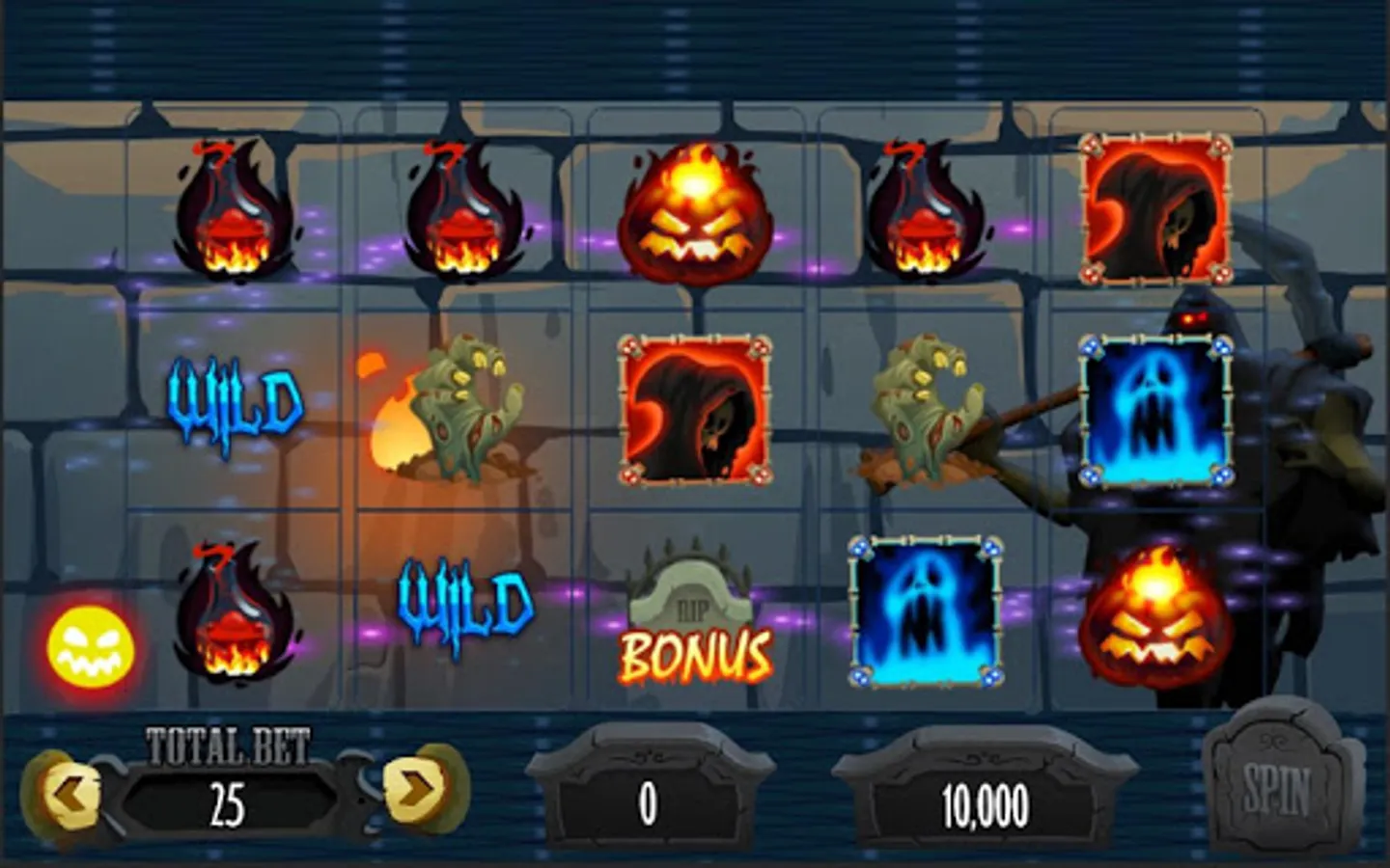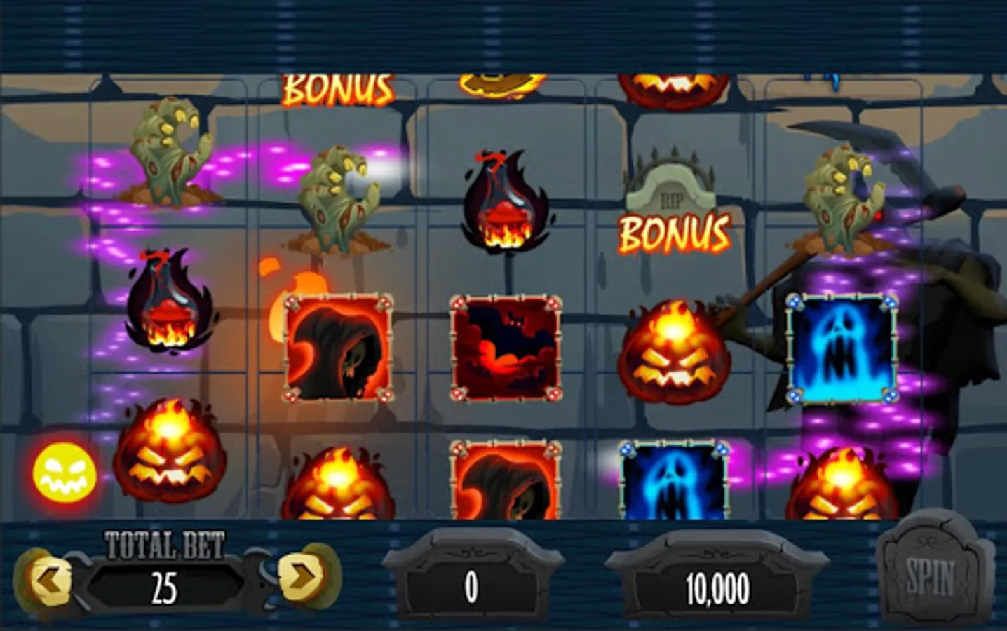 Play slot machine (with virtual money ) on the Halloween theme , find the atmosphere of a casino on your mobile phone. Discover this game very addictive chance.