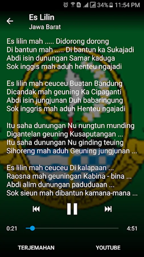 Indonesia Traditional Song is an app which developed for you to enjoy traditional song in Indonesia. You can listen, search or view song by regions. Moreover you can sing that traditional song because this app equipped with the lyrics of each song. This app also equipped with lyrics translation so you can listen and know what the meaning of that song.