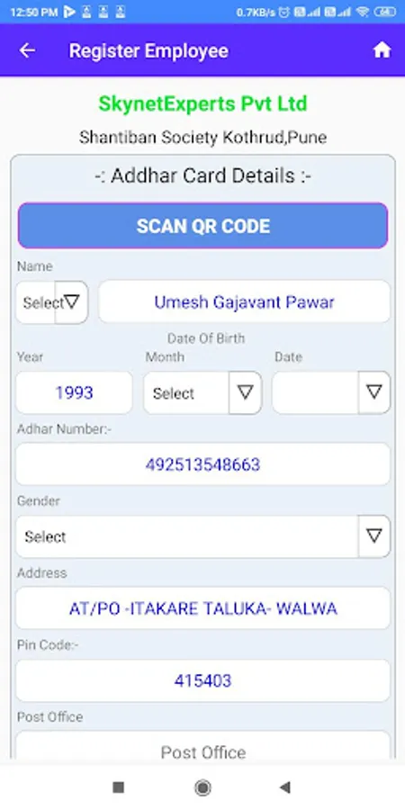 It is a data collection application. using adhar card Qr Scanner take some Information is available on adhar.