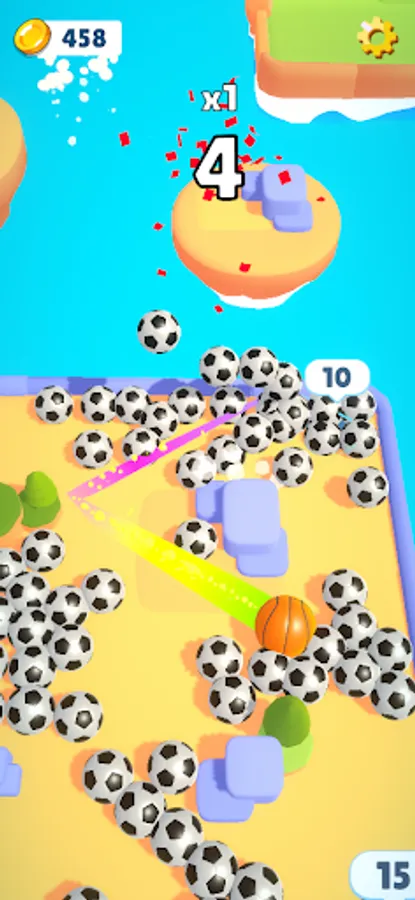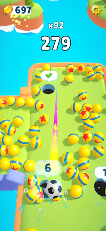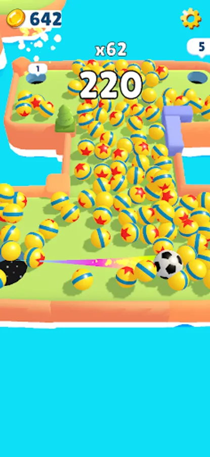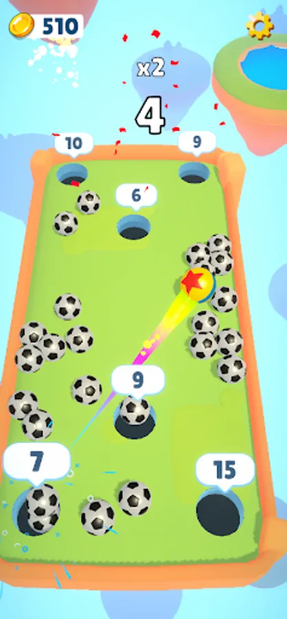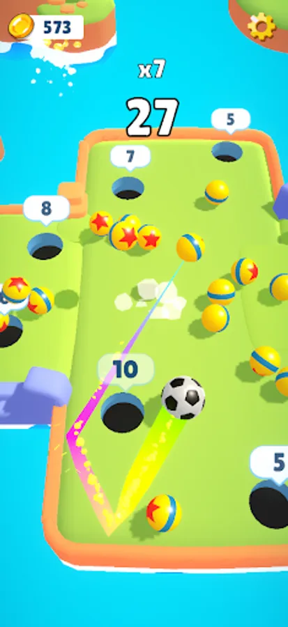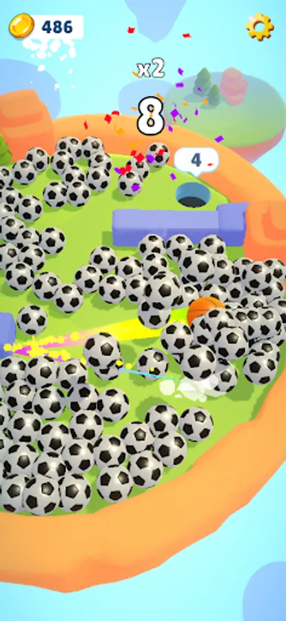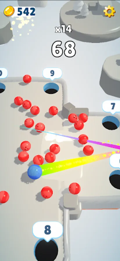 Throw a charged ball at small balls in the arena to multiply them. Then push all the balls in the arena into the holes. Be careful and aim well, because the holes do not still stand. Its not the Billiards! Its not the Tennis! Its a Flick Ball! Have fun and fill all the holes!