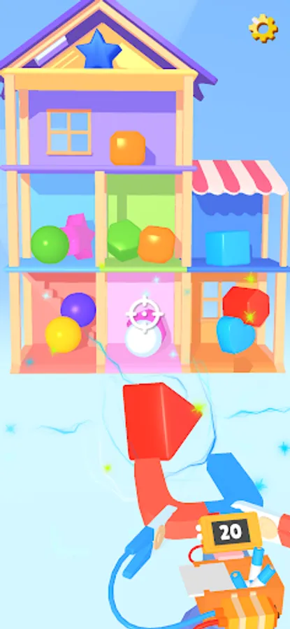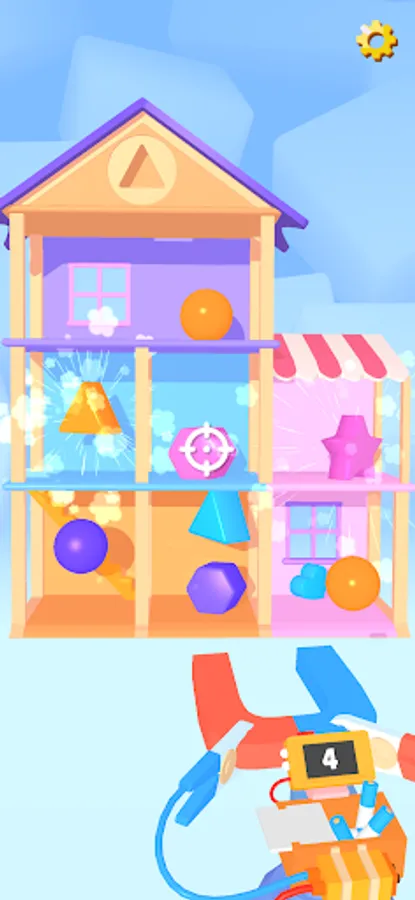 Control the Magnetic gun. Pull and push geometric toys. Solve the simple geometric puzzles. Swap the toys around. Put all the figures correctly.