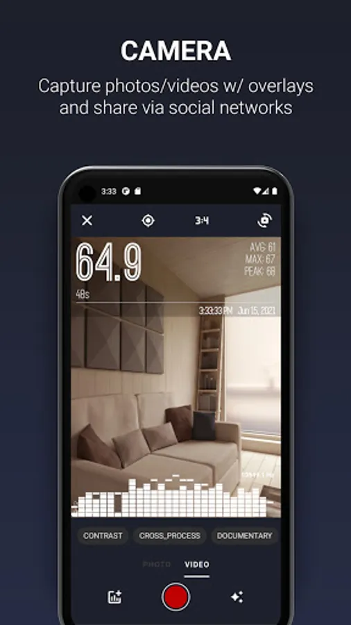 - InstaDecibel to capture your dB report overlaid on photos and easily shared via popular social networks (Facebook, Instagram, etc.).