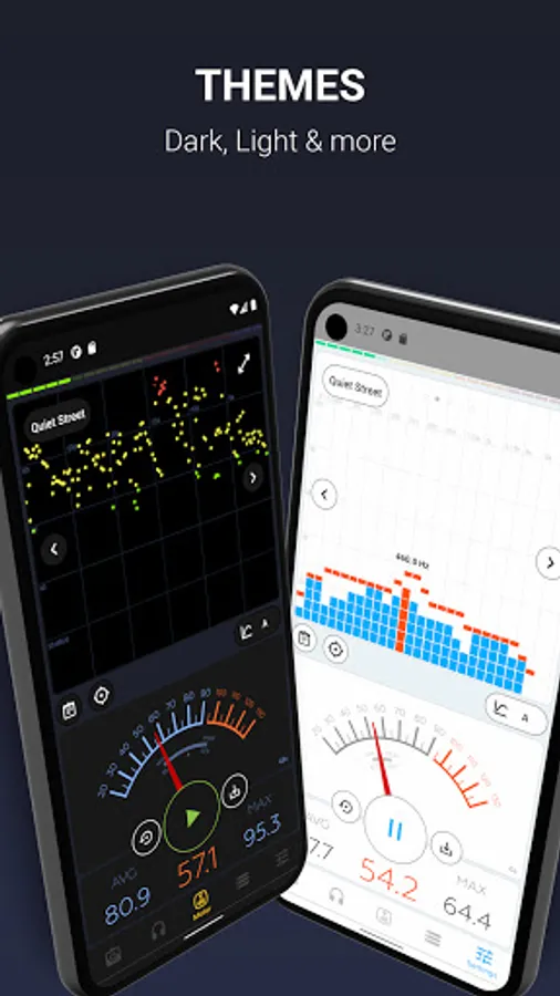 - Display Current, Average/Leq, and Max values with both nice and clear digital and analog layouts