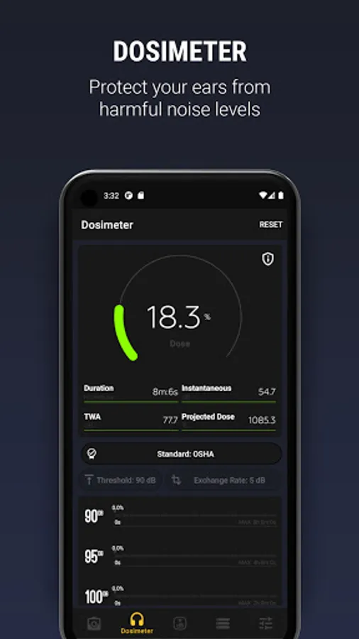 - Trusted accuracy: the app is carefully tested and calibrated for most devices. The precision is matching with real SPL devices