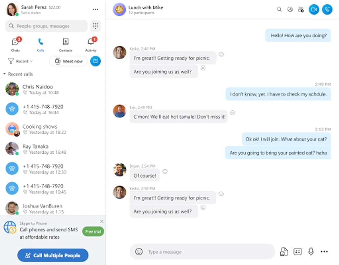 Skype is the best way to stay connected with anyone, anywhere, anytime. You can make free video calls with up to 100 people, send and receive free text messages and use ChatGPT with others. With Skype, you can send voice messages, emojis, share your screen to show what you’re working on.