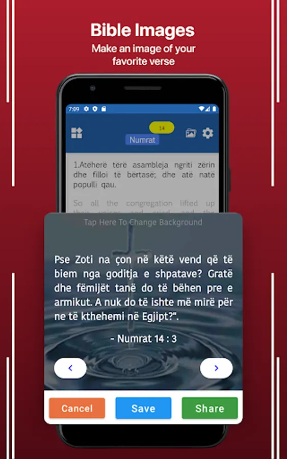 Notification Alarm: Set the verse on a daily alarm that one is notified at a particular time.