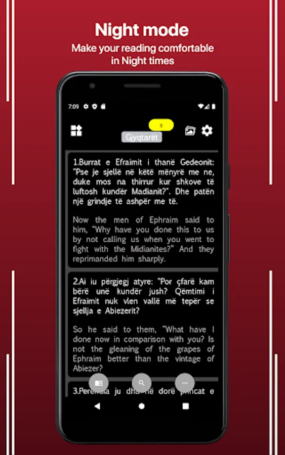 The Bi-lingual version of Albanian–English Bible is established in a single application. The righteous meaning of a Verse in the Holy Bible Scripture is now readable in two languages simultaneously. There are other languages in the bi-lingual app, with inclusion from the Oly Bible brand turning the novel readers into Bible readers in easily understanding the wordings of God Jesus. Read the Holy Bible in your mother tongue accompanied by English; here, it's Albanian and English parallel Bible.