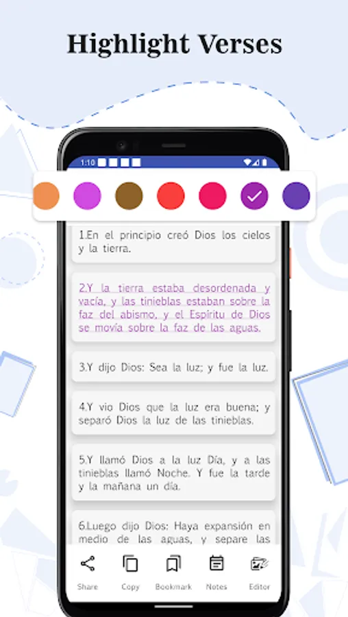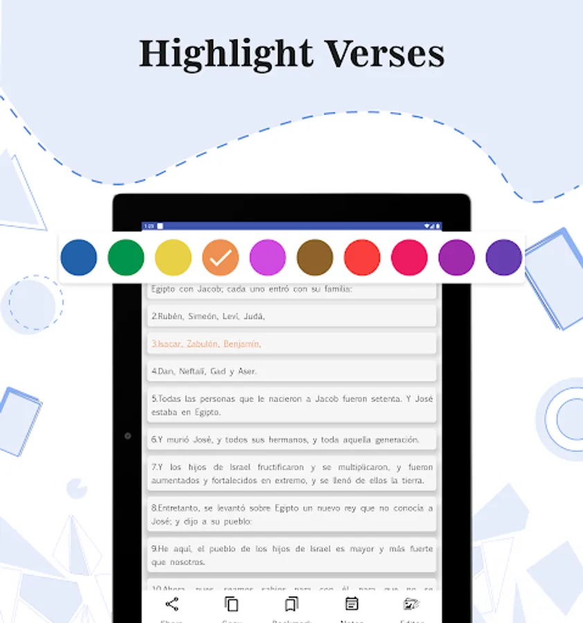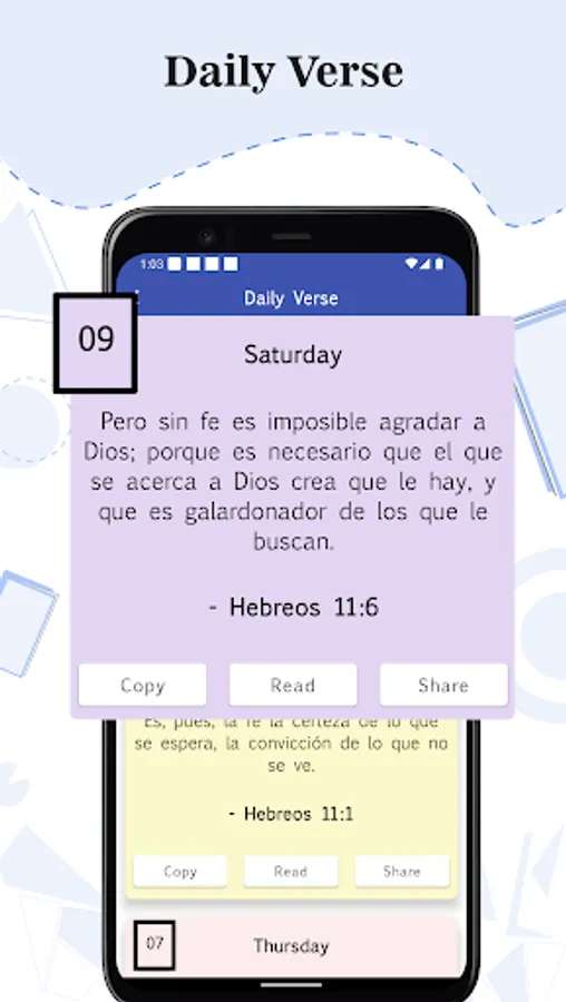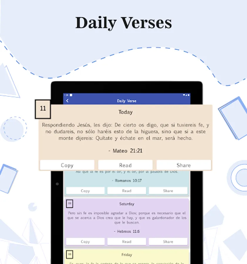 Daily Verse: Start each of your days with the random verse that appears on the Holy Bible app, where it can be copied and shared.