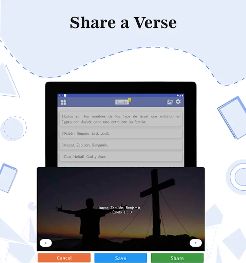 Quotes: Define the verses in different sections placed over an image that the user can use severally.