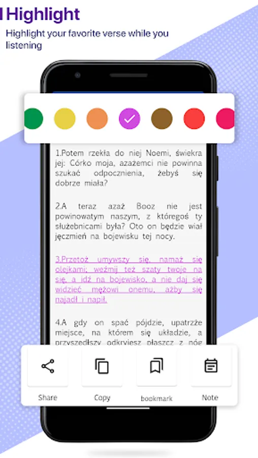 Daily Verse: Start each of your days with the random verse that appears on the Holy Bible app, where it can be copied and shared.