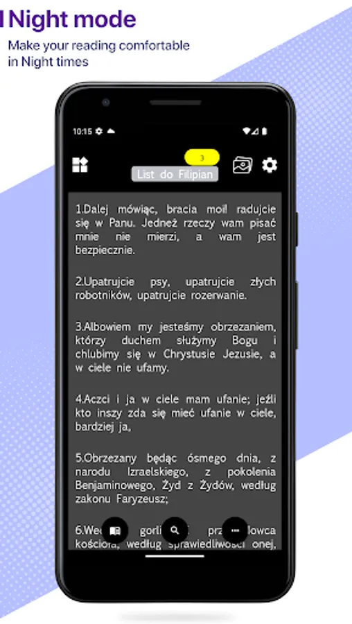 Dark Mode: Make the bible reading in the dark mode with text inversed in white color and background color in black.