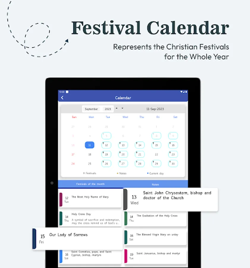 Festive Calendar: Let us know about all the Christian festivals and events in this Calendar. Instantly share an image with an attached verse to others in WhatsApp and save it in Gallery.