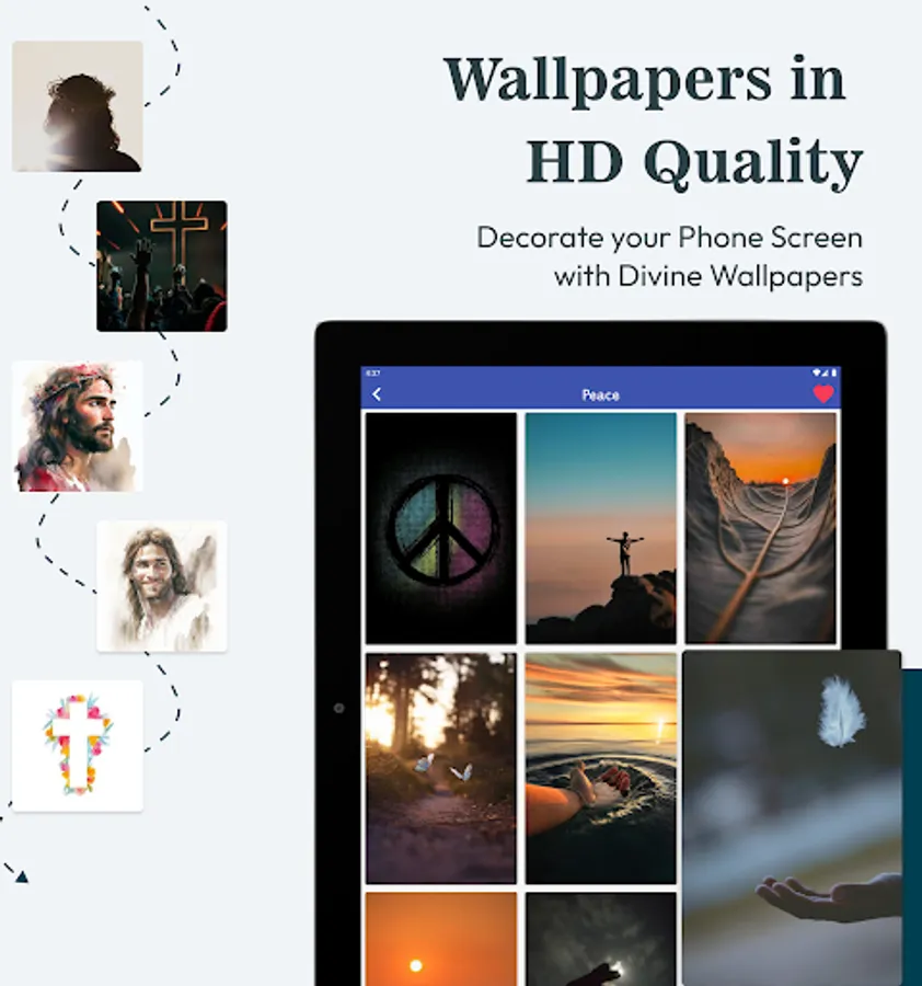Quotes: Define the verses in different sections placed over an image that the user can use severally.