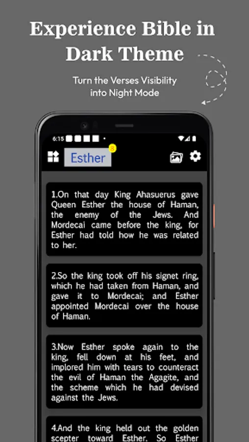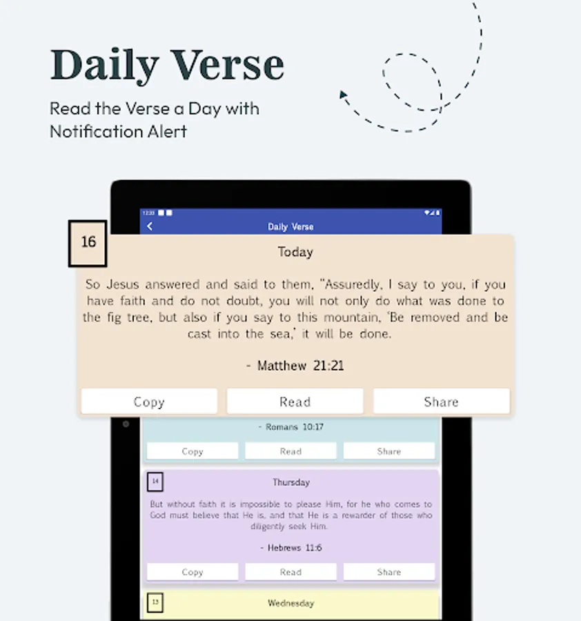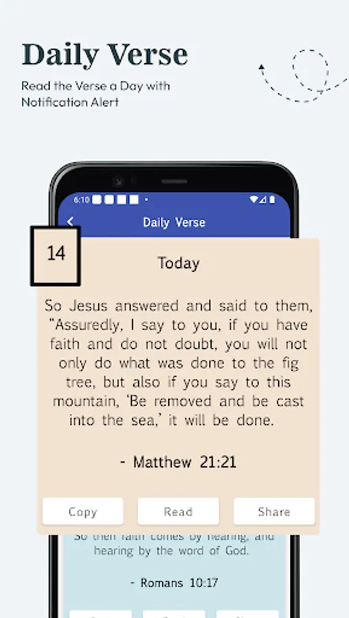 Daily Verse: Start each of your days with the random verse that appears on the Holy Bible app, where it can be copied and shared.