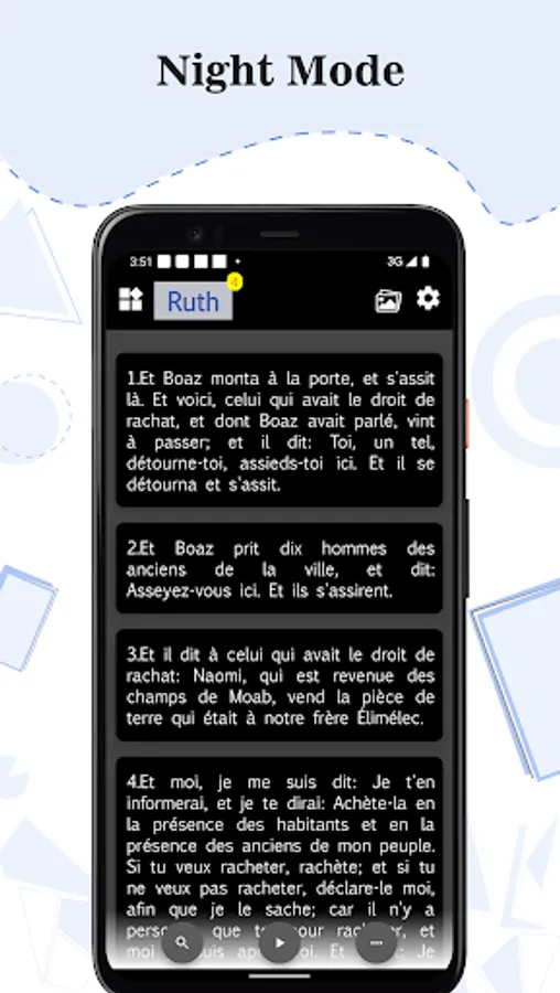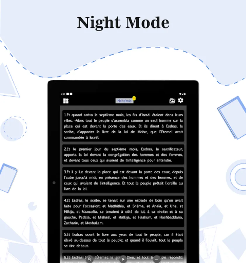 Dark Mode: Make the bible reading in the dark mode with text inversed in white color and background color in black.
