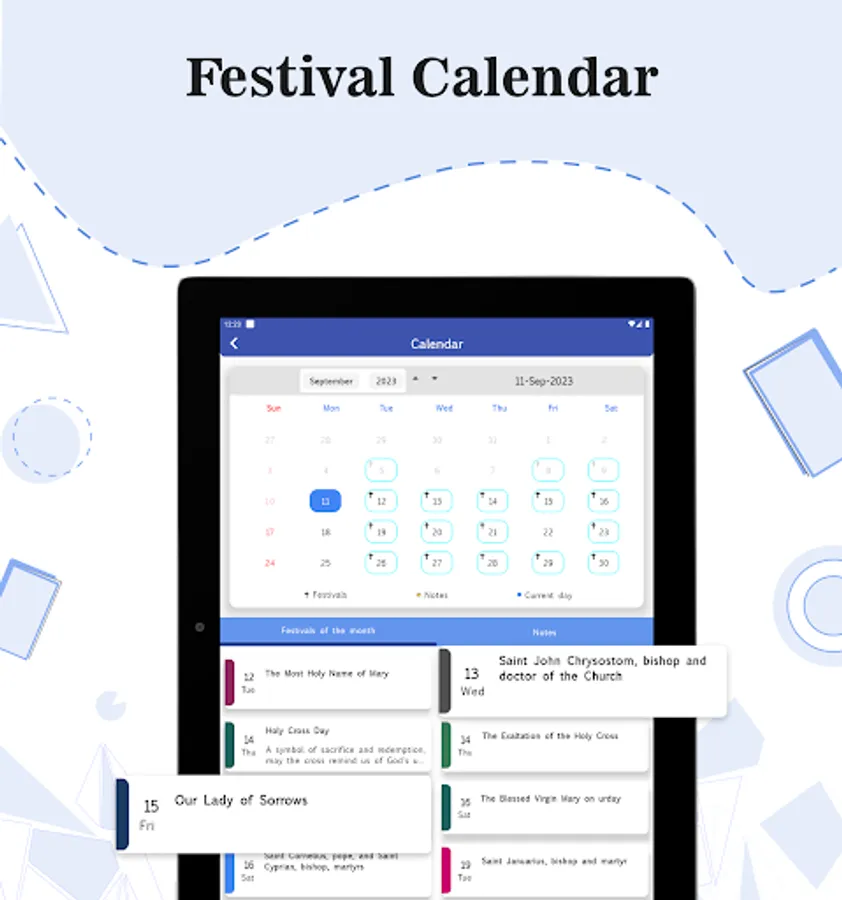 Festive Calendar: Let us know about all the Christian festivals and events in this Calendar. Instantly share an image with an attached verse to others in WhatsApp and save it in Gallery.