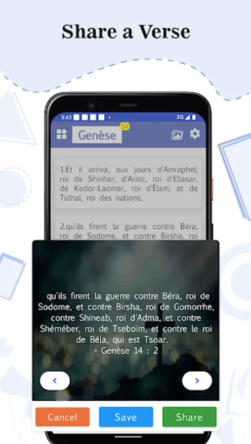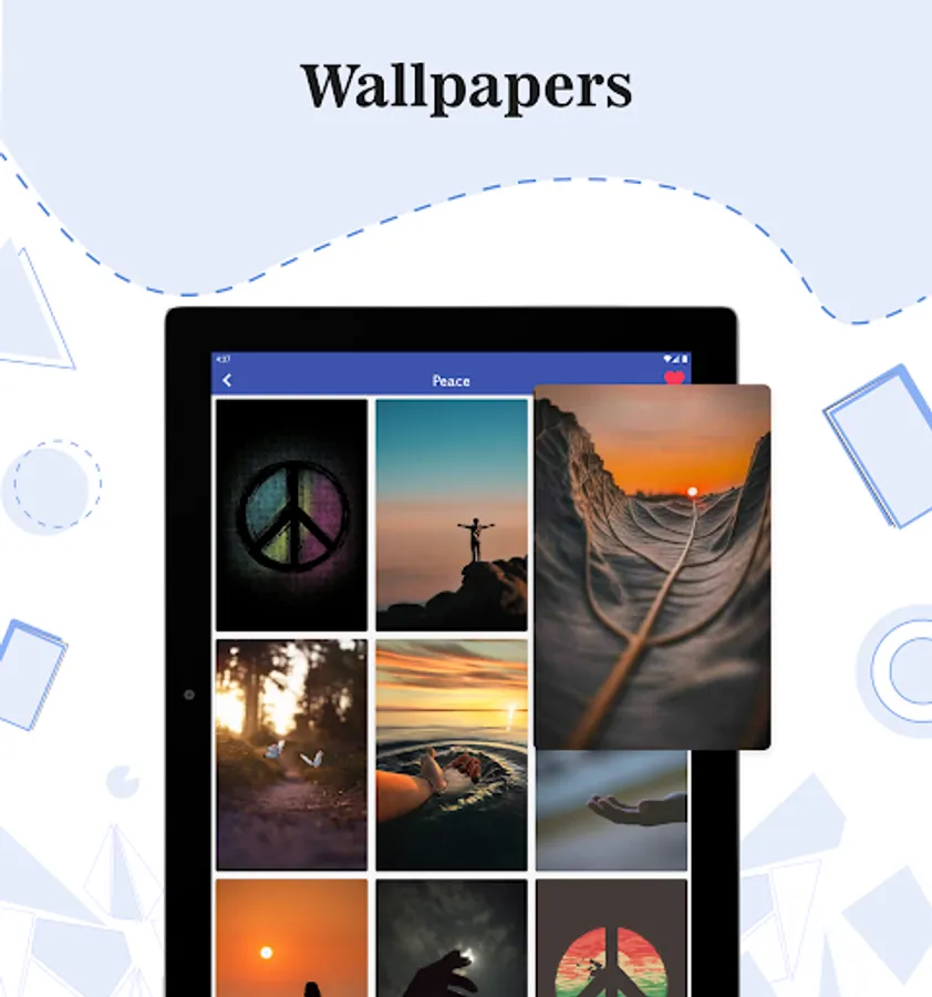 Quotes: Define the verses in different sections placed over an image that the user can use severally.