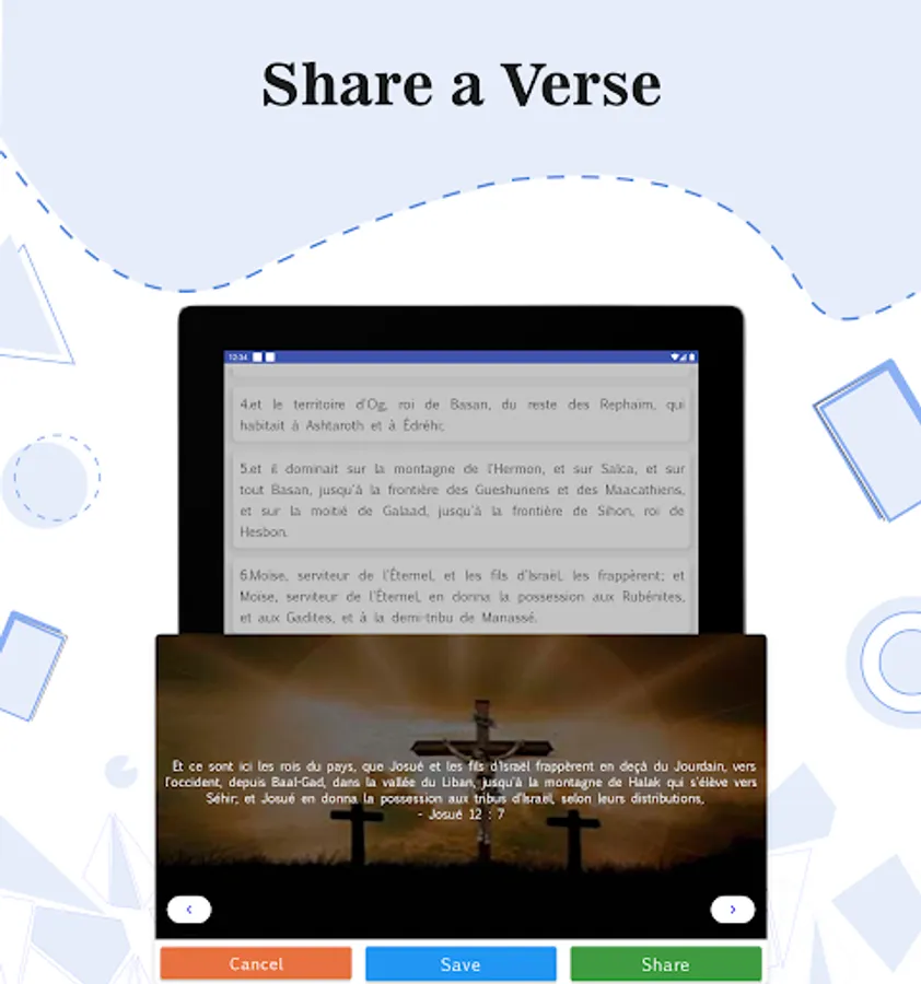 There is always a pocket version of the Lord's wordings in the name of La Sainte Bible en Francais Apps that showcase one's proper path by enlightening their mind and heart with pure soul. The Psalm of God becomes part of daily life with Sainte Bible reading at least one Verse a day can bring a vibrant change in your life. Sainte Bible marks only a limited data packet connectivity to operate on displaying the wallpaper, highlighting videos of God's advice, and so on in the list.