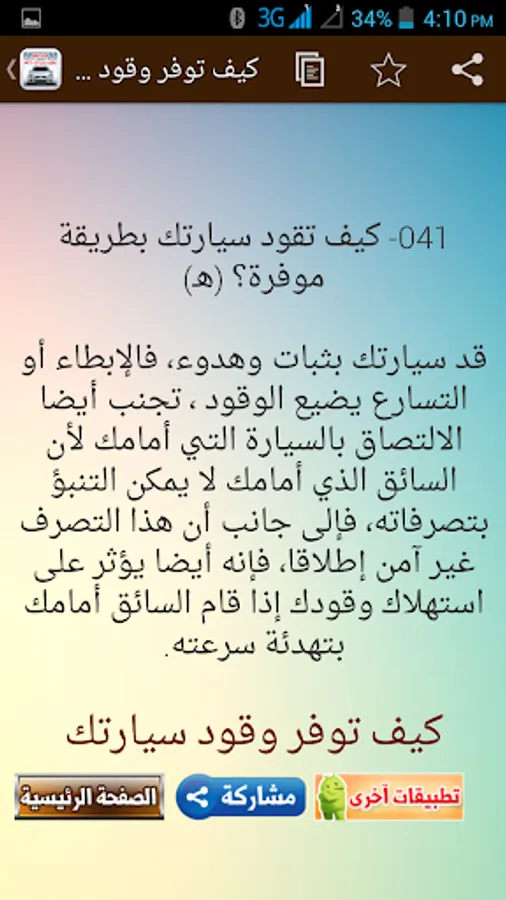 Under successively crises, shortage of essential commodities and the most important of gasoline, citizens need to rationalize their consumption, not in order to just save money but to avoid queues and injuries in some cases, to help citizens around the world, the researchers in the environment and technology at the University of California Research Center conducted a study revealed that it can be obtained greater use of the car's fuel without modification of the car or its engine, but they also found that it «may be an adjustment to the car easier to change the behavior of the driver», we present the most important recommendations of this study and some other studies: