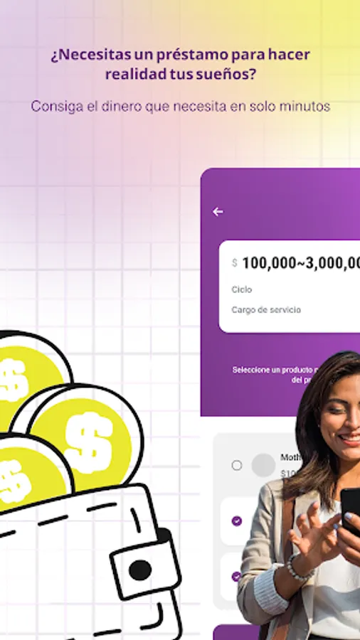 The loan amount we can provide ranges from 100,000 pesos to 3 million pesos. No collateral required. You just need to fill in some simple information, test your credit, and then confirm the loan for you.